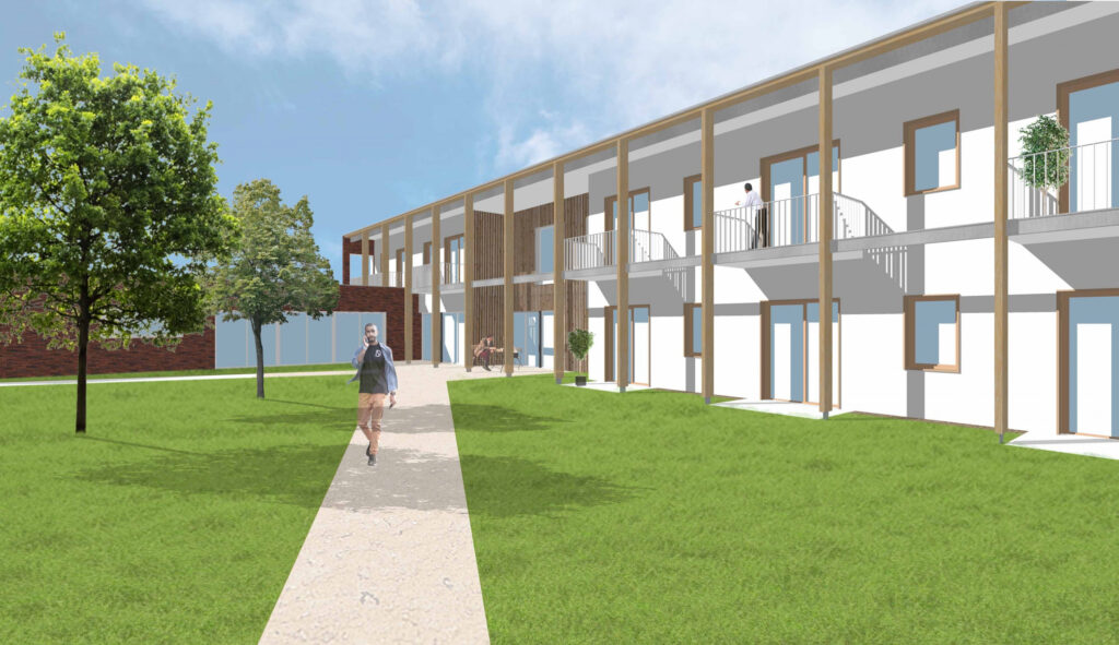 Chaque studio (27 m² en moyenne) sera équipé d’une kitchenette et d’une salle de bain, et prolongé d’un espace extérieur privatif, terrasse ou balcon. La résidence intégrera également des espaces collectifs — salon, cuisine, réfectoire, salles d’activités — favorisant le lien social et la convivialité.